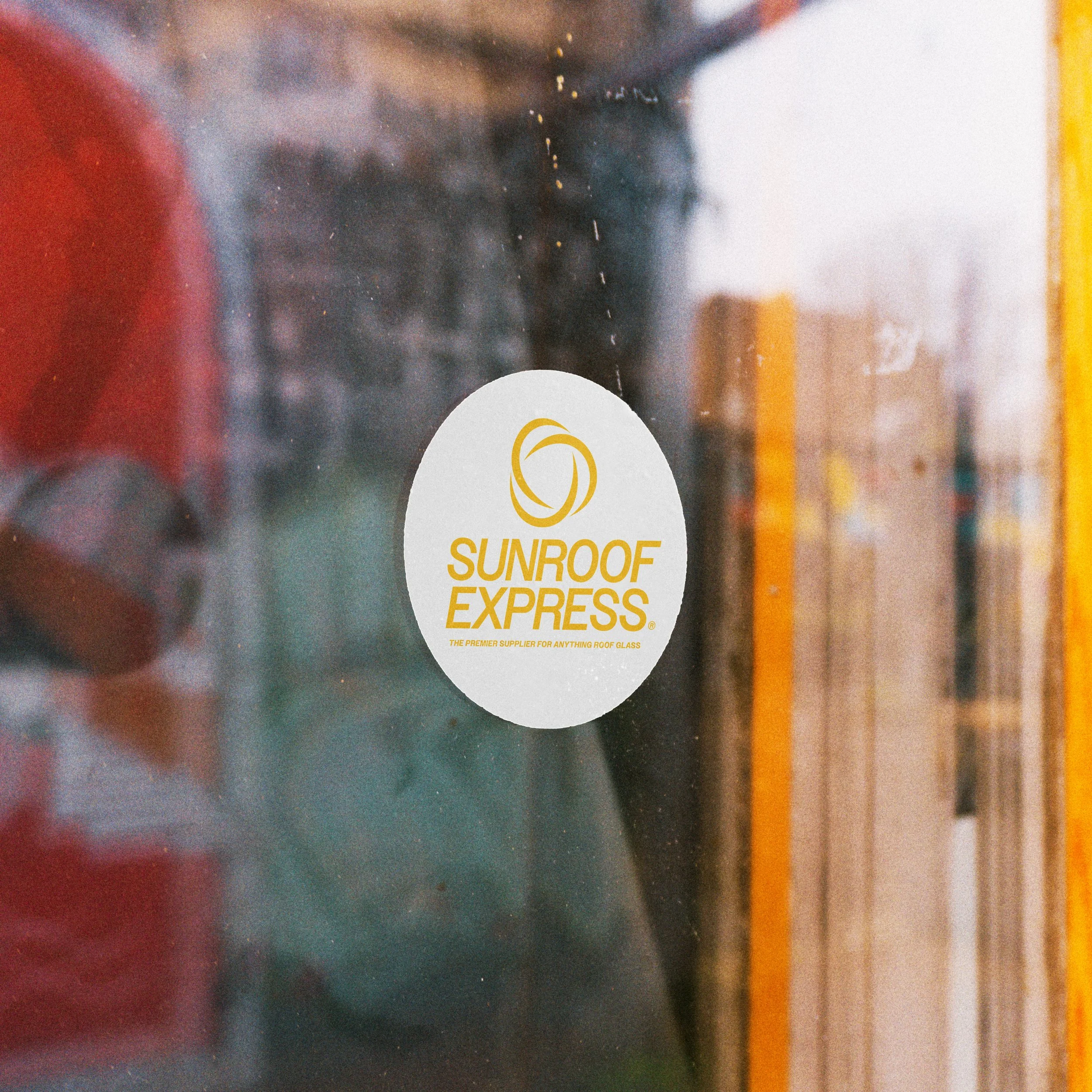Sunroof Express sticker for repair shop storefronts