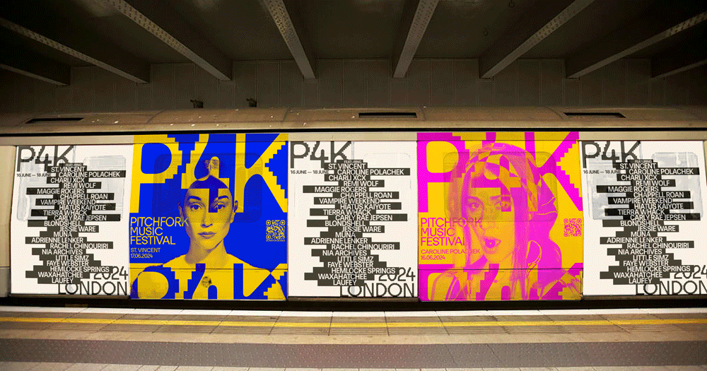 Every year across London’s sprawling music scene, Pitchfork organizes a city-wide festival to showcase a variety of artists. To match the publication's primarily online existence, I developed a visual identity that aims to boost visibility for the festival and the quality journalism that Pitchfork is known for.